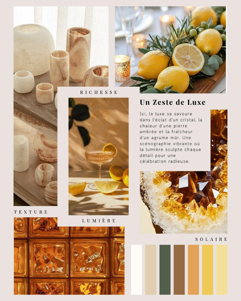 L'éclat des agrumes et la chaleur de l'ambre pour une scénographie vibrante et pleine d'énergie.