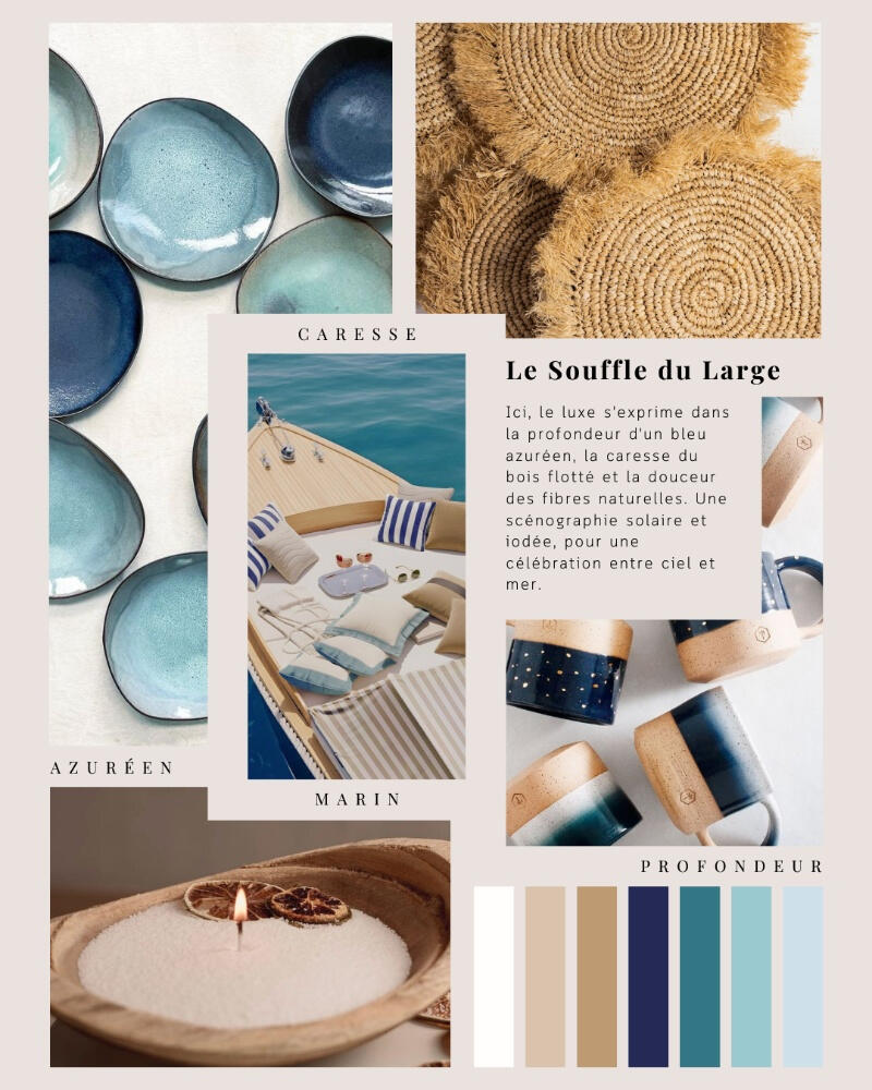 La profondeur d'un bleu indigo mêlée à la texture du raphia pour une élégance marine et nomade.
